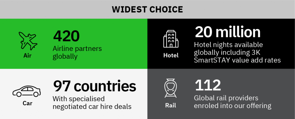 That means improving your bottom line, making booking, paying, and searching easier, and giving you the content you need to make travel improvements across the board. For more savings and happier travellers, let us get to know your business and negotiate on your behalf.