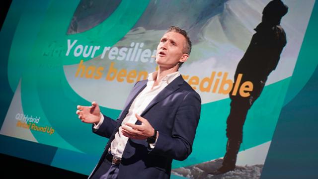 • Engaging artist and illustrator, Bill Hope, to create a live-scribed digital mural that was projected onto a 12m x 3m screen. The visuals were inspired by the key points in the conversation.