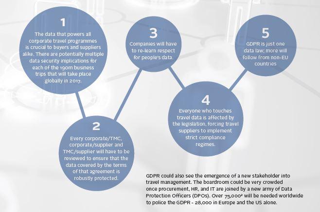 GDPR could also see the emergence of a new stakeholder into travel management. The boardroom could be very crowded once procurement, HR, and IT are joined by a new army of Data Protection Officers (DPOs). Over 75,0002 will be needed worldwide to police the GDPR - 28,000 in Europe and the US alone.