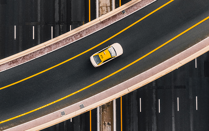 Car on highway showcasing sustainability