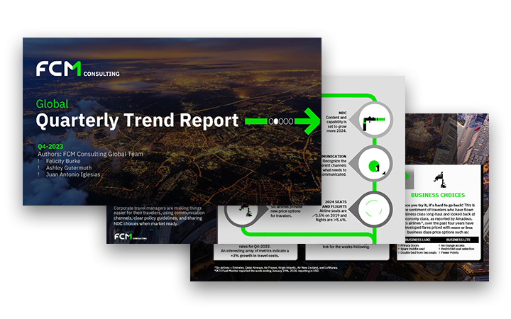 FCM Consulting, quarterly trend report, global corporate travel management, data
