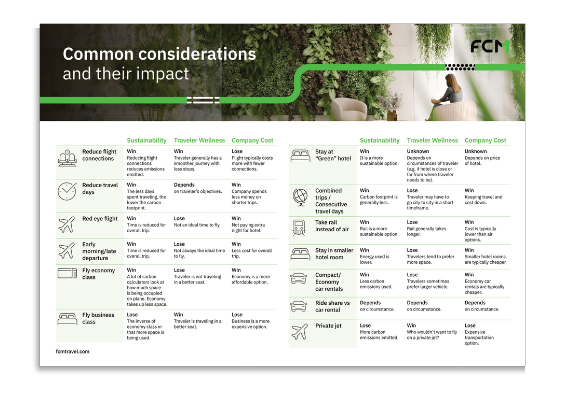 With business travel picking up in parts of the world, we’re giving a simplified view into how these common metrics rank against sustainability, traveler wellness and company cost.