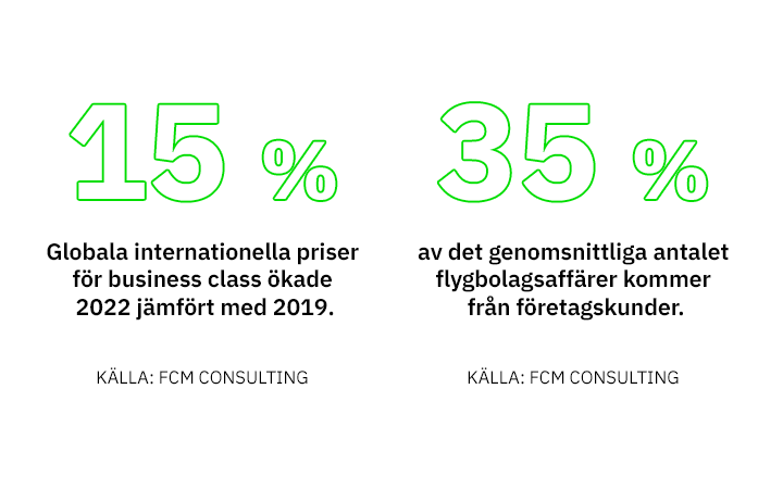 Våra affärskonsulter utför en noggrann analys av flygkategorin för att identifiera möjligheter, risker och en handlingsplan för att genomdriva förändringar. Med hjälp av skräddarsydda rapporter kompletterat med data om marknadsandelar får du en tydlig handlingsplan med specifika rekommendationer utifrån dina behov, t.ex. kostnadskontroll, resenärernas behov, täckning och förslag på bästa leverantörer. För bästa möjliga resultat och relevans ger FCM Consulting också råd om globala trender så som koldioxidutsläpp och initiativ för välbefinnande för att optimera ditt reseprogram och föreslå konkreta åtgärder.